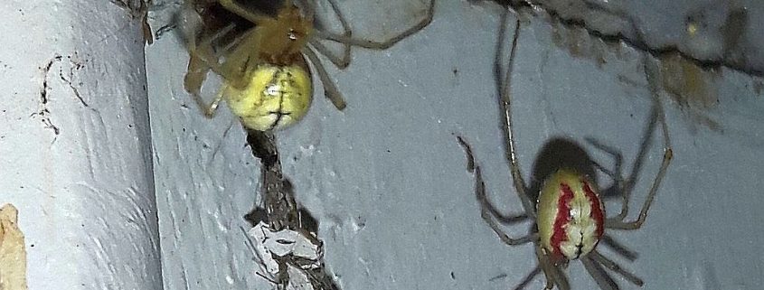 5751 Hi I am from Newfoundland Canada and I found these little guys climbing on my house right above my door and I’m just wondering what kind of spider they are. Can you help me please? I found it weird that 2 of them were hanging out together and seemed to be following each other.