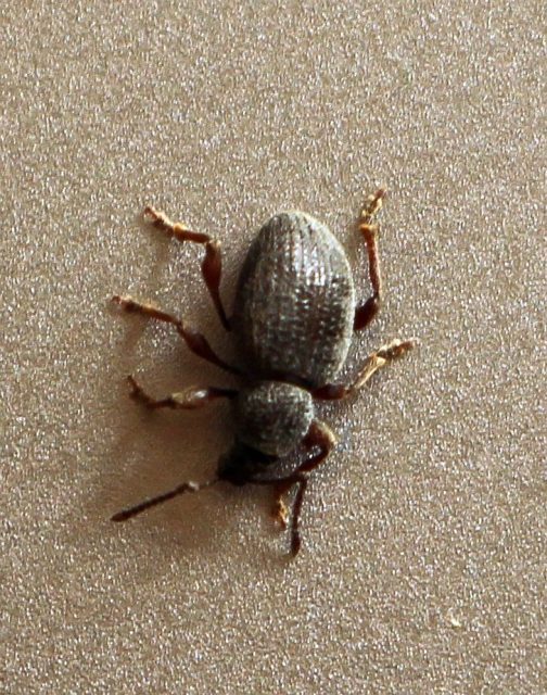 Like no. 5774, This is another broad-nose/short-snouted weevil (Coleoptera: Curculionidae; subfamily Entiminae). These weevils often enter buildings in search of shelter, but do no harm there. Ed Saugstad, retired entomologist; Sinks Grove, WV.