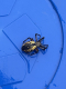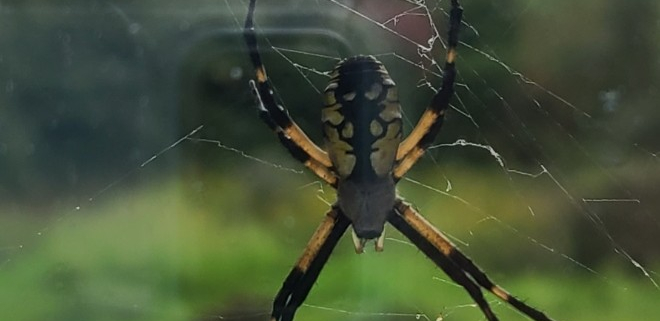 Number 7465. This is Argiope aurantia, a very common and widespread orb weaving spider (family Araneidae). Because of its very wide geographic range, it goes by a wide variety of common names. See Argiope aurantia examples . All orb weavers are harmless to humans.