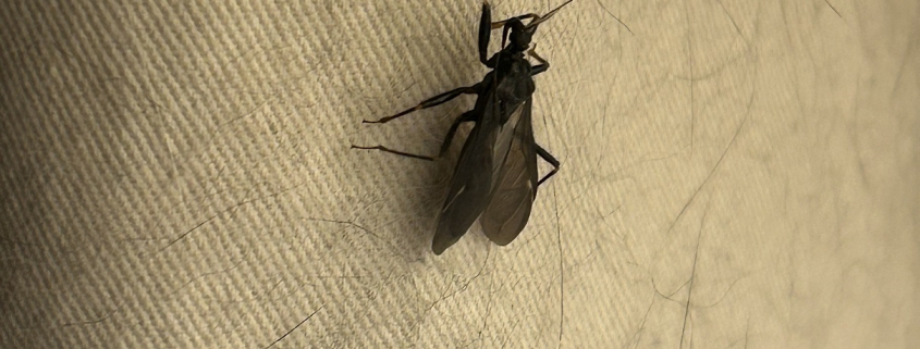 7442. I’ve seen a few of these guys in the summer months. They seem to get in through the window air conditioner. What is it, and is it dangerous to me or my cat? (On that note — please excuse all the cat hair visible in the photo.) Thank you. Toronto, Ontario. Canada