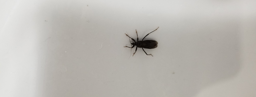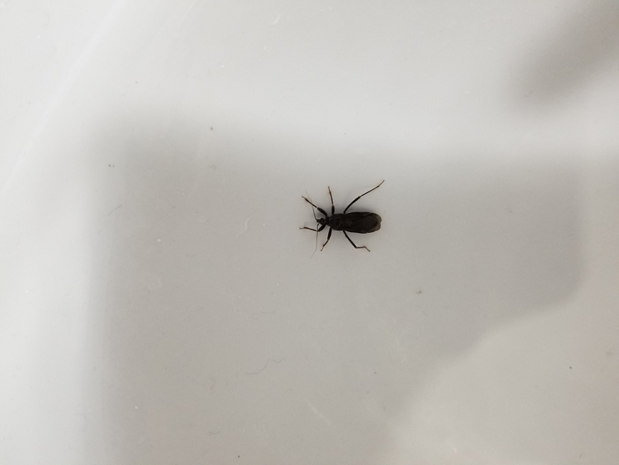 Number 6414. This is an assassin bug (Hemiptera/Heteroptera: Reduviidae) called the masked hunter (Reduvius personatus), an introduced species with a cosmopolitan distribution. These are general predators on other small arthropods, and are reputed to have a very painful (but not dangerous) bite. Click here