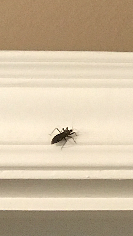Number 6443. This looks like an assassin bug known as a masked hunter (Reduvius personatus; Hemiptera/Heteroptera: Reduviidae). This is a cosmopolitan species often found indoors and reputed to have a very painful ‘bite’- Click here for more detailed information.