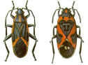 Box Elder bugs (on the left) are sometimes confused with another insect called Milkweed Bug (on the right).