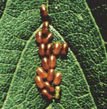 Eggs are a rusty red color and are not often seen as they are deposited on boxelder trees.