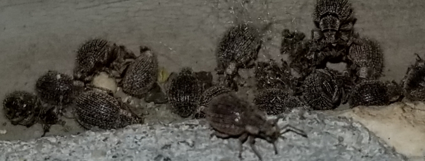 Number 6239 – These are broad-nosed/short-snouted weevils (Coleoptera: Curculionidae; subfamily Entiminae). Several species of these will enter buildings in search shelter, but will do no harm there.