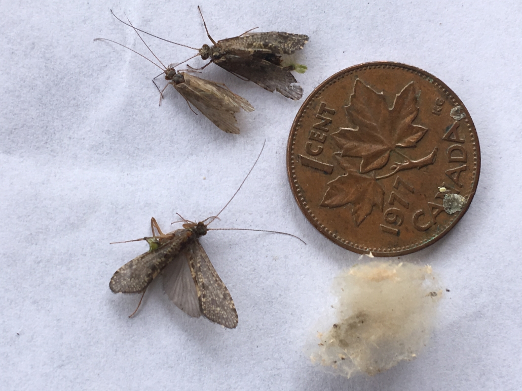 6222 Waterloo Ontario. Hundreds of these outside and under deck and on front porch, anywhere high around entire house. But congregate on window screens and walls. They fly is like a meal moth but are very quick and difficult to kill. Go into any crevices and brickwork and can make themselves very narrow. Also like it underneath and in between my outdoor furniture cushions, where I also find webbing. They mate and then I find yellow silk web with hundreds of tiny pale-yellow eggs. Webbing is mainly on underside of windows and up high along walls and underside of fascia. But have also found eggs in between cushions and on underside of furniture. Started about second week of May for the past several years. When I go outside they fly in my hair and anywhere else. How do I eradicate this? It seems to last for 2-3 months. It’s ruining my outdoor enjoyment!