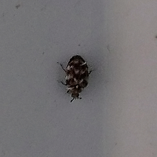 Number 6339 This is a carpet beetle (Coleoptera: Dermestidae); it looks like a varied carpet beetle, Anthrenus verbesci. The adults often are found at windows where they have been attracted by the light in their attempt to get outside. Click here elsewhere on this site for some control recommendations.