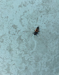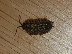 6922. Hello, So over the past three weeks I have found 4 of this bugs. 3 of them were on the upstairs bathroom floor. One of them was in the bathtub right by the drain. From what I can see they are dead. They just appear overnight. I found the one in the picture this morning. The one in the tub was two days ago. There is no window in that bathroom. There is a bathroom fan that could be a point of entry? Not sure. Attached are the pictures from this morning. Thank you, Susan.