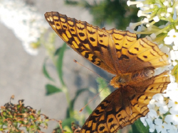 Number 6660. This is a fritillary (Lepidoptera: Nymphalidae; Speyeria sp.) There are a few species that are so similar in overall appearance that I hesitate to make a specific identification from a single image. Scroll through the images of Ontario fritillaries at Click here for some examples.