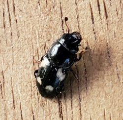 Number 6567. This looks like a nymph of a white-margined burrower bug, Sehirus cinctus (Hemiptera/Heteroptera: Cydnidae); Click here for an image. The adults and nymphs feed primarily on the seeds of nettles and plants in the mint family.