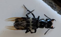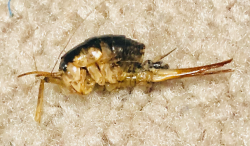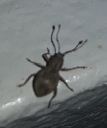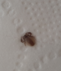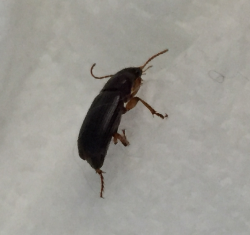 6567. Hello, I found this bug crawling at night, next to my dogs crate, where he sleeps. We has just come back from a walk, so I don’t know if the bug came from the park we went to or was already in the crate. The bug has 6 legs and 2 antenna, you can’t see the legs that great in the picture. The front 2 legs not seen in picture face the front of his head, where the back 4 legs face the back of his body. The bug is quite small, measuring about a quarter of an inch in length. Thank you! Boston, Massachusetts. United States