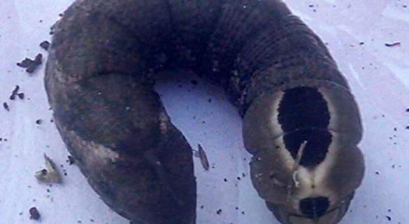 6625.    Our dog found this in my wife’s flower beds. It is the size of a “cigar”, segmented, no legs, and has two large eye like markings on one end. The other end looks like it comes to a point. Wautoma, Wisconsin. United States