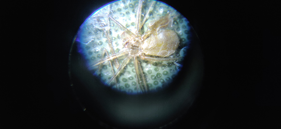 6727.      The insect picture is taken with a cell phone through a pocket microscope. The other picture occurred as my child was sitting quietly watching TV and then yelped. Swollen, red. Gone in about 2 hours. But it hurt. I’ve been seeing white flecks for a month, and I’ve been very itchy. I’ve noted them in our hair, treated our crew with Nix, twice. But now they are everywhere and the small white fibrous looking things progress to gelatinous globs, with perhaps 50 sacs stuck together, and all this not being larger than 1.5 MM. I have seen a translucent spider coming out of the walls (max 2mm long). It appears as if these things either jump. When I go to work, I don’t feel a scratch at all. When I return home, half an hour and I’m being bitten by something so small I have not been able to see it, but it has a pretty good pinch (worse than a mosquito, not a wasp). Lots of cobweb development in corners and little nooks. And we vacuum daily, ceiling to floor with a hepa vacuum. Over kill hepa airfilter, over-kill dehumidifier has always been on since we bought this trailer new 4 months ago. When you open the door at night you can see millions of specs of “dust” flying around, and they stick to our vehicles, and have the same gelatinous look as what is in the trailer absolutely everywhere. I seem to be the itchiest, like absolutely driving me crazy. Wife and oldest child less so. And youngest not much at all, with the exception of that bite. I feel as if they are coming through the smallest barely even draft producing cracks. Our neighbor noticed the same thing last week and has left. I’ve sprayed every chemical and fogged and they perhaps seem better for a day, but not long. All bedding and clothing and cupboards have been vacuumed and sprayed. Absolutely crazy. I literally feel as if the organism is entirely throughout the interior of our walls and small amounts seep into the trailer and then they are everywhere. If you scratch your head or cloths over a black nylon material it seems like little flecks of dandruff or lint falls out. But when I look through my microscope they have the same gelatinous and sometimes spiny fibre like appearance. Kelowna, BC. Canada