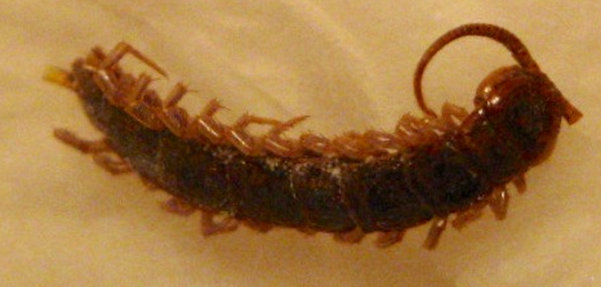 Number 6680. This is a centipede (class Chilopoda). These are general predators on other small arthropods, and ones like this are harmless to humans. Click here for more detailed information.