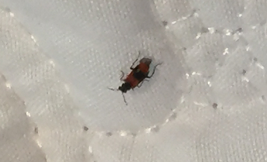 6388  I found this in my bed in late May, just found another flying inside of my lamp last night. I have about 5 bites. The bites are mosquito like bumps that are extremely itchy even beyond 1 week. Very small. Black body with red stripe. Will have to zoom in picture to get best look. What is this? Should I get my house sprayed? Burlington, ON L7M 4A4 Canada