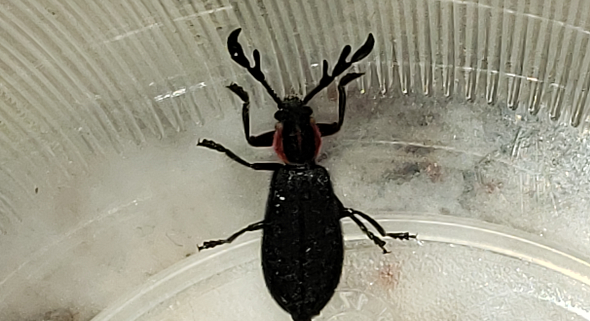 Number 6340 This is Chariessa pilosa, a checkered beetle (Coleoptera: Cleridae), Click here for an image. Checkered beetles are general predators on other small arthropods; the larvae of this species are reported as feeding on larvae of wood-boring beetles.
