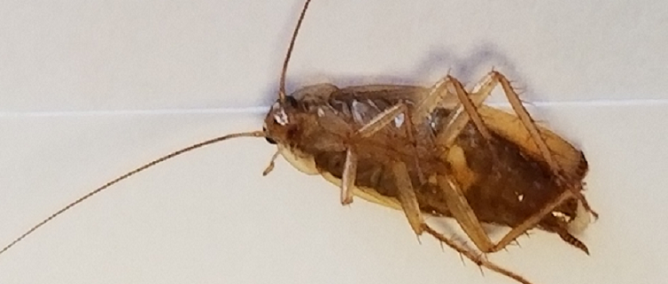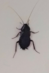 Number 6330 This is a cockroach, likely a German cockroach, Blattella germanica (Blaberoidea: Ectobiidae). This species is notoriously difficult bring under full control; Click here elsewhere on these pages for some control recommendations.