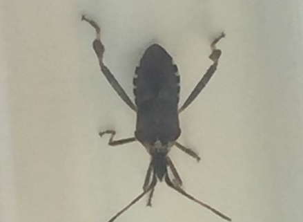 Number 6197 – This is not a beetle; it is a western conifer seed bug, Leptoglossus occidentalis (Hemiptera/Heteroptera: Coreidae). These often enter buildings in search of shelter, but do no harm there. Click here for more detailed information.