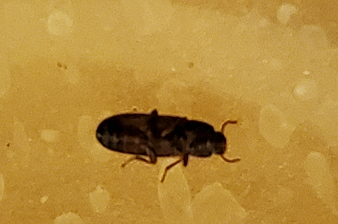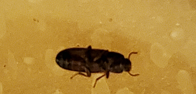 6853. Small dark brown/black beetles are everywhere, in cupboards, linen, bed, bathroom… They smell bad when you touch them and have a small white worm larvae. The beetles are up to a 1/4″ big. I haven’t been able to get rid of them by cleaning with soap and water but it helps. Saskatoon, Saskatchewan. Canada