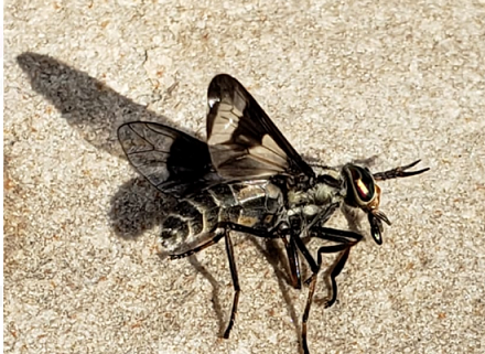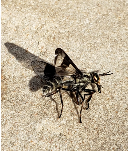 Number 6538. This is a deer fly (Diptera: Tabanidae; Chrysops sp.). Although they can vector several diseases of animals, they do not appear to be a significant vector of any human diseases in North America. Click here and Click here for more detailed information.