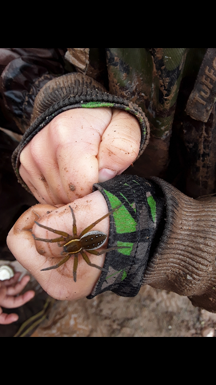 Number 6428. This is Dolomedes triton, a fishing spider in the family Pisauridae. Beautiful specimen; glad you didn’t harm it!