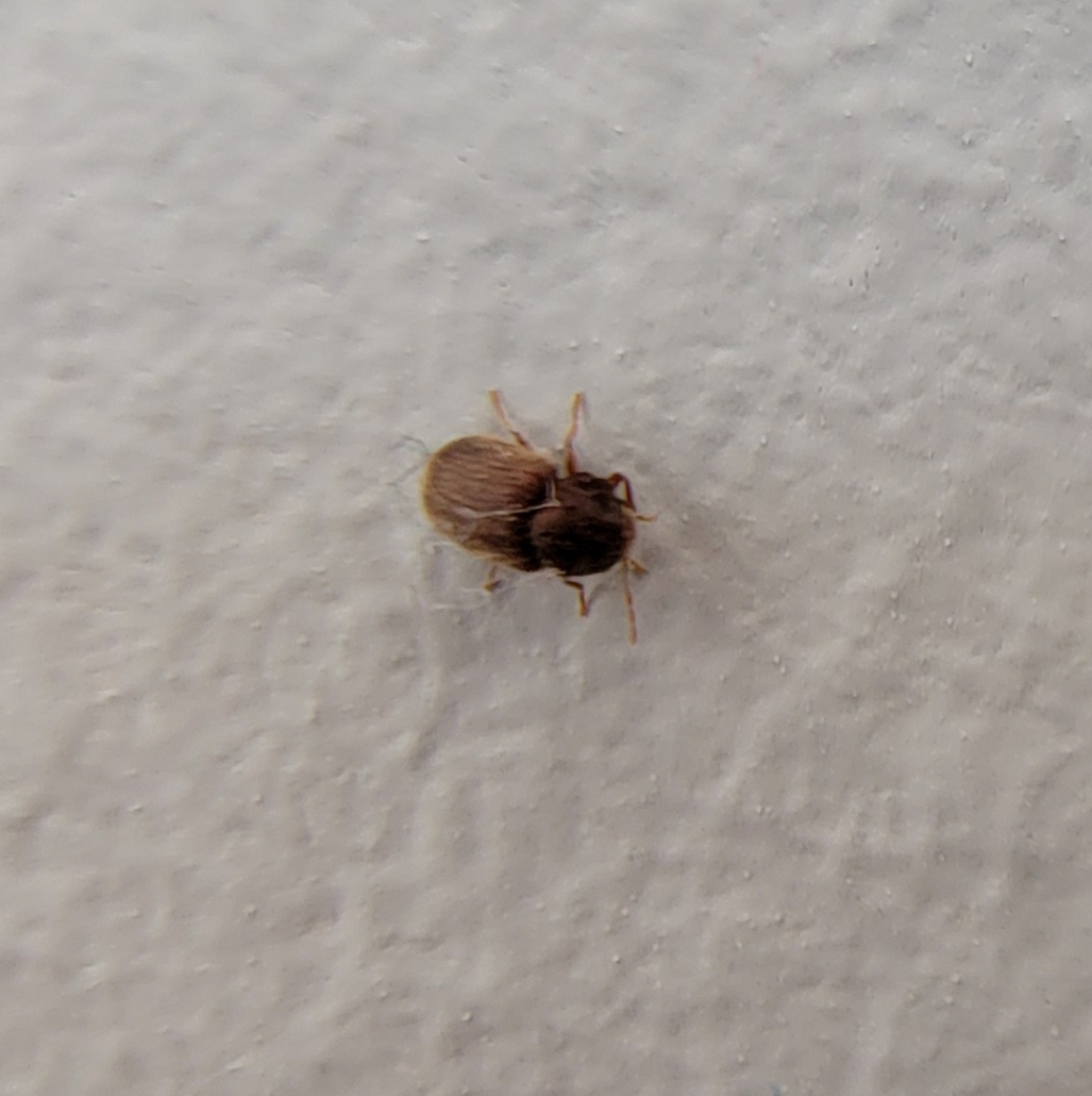 Number 7177. This appears to be a drugstore beetle (aka biscuit beetle), Stegobium paniceum (Coleoptera: Anobiidae). These beetles will infest an extremely wide variety of dry stored food products, including cereals, flour, baking mixes, spices, drugs, pet foods, etc. Drugstore Beetle Detailed Information