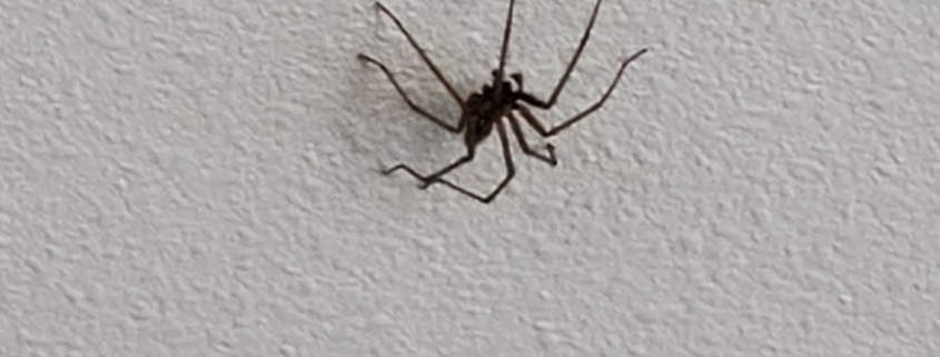 Number 7288.   This appears to be a funnel weaver spider (family Agelenidae), either in the genera Eratigena or Tegenaria (the image is too dark to tell which). Neither is dangerous to humans. Funnel weaver spider detailed information