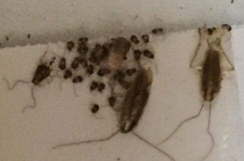 Number 7072. These are German cockroaches, Blattella germanica (Blattodea: Ectobiidae), a peridomestic species difficult to bring under complete control. Click here for some control recommendations.