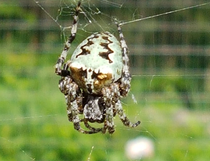 Number 6281 This is a giant lichen orbweaver, Araneus bicentenarius, Click here for an image. All orb weavers are harmless to humans.