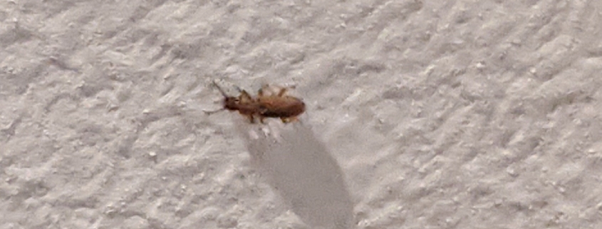 7143. Have seen about a dozen to two dozen of these guys in the past few weeks crawling up walls. They are very small, easy to kill. Wellington, Quebec. Canada