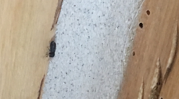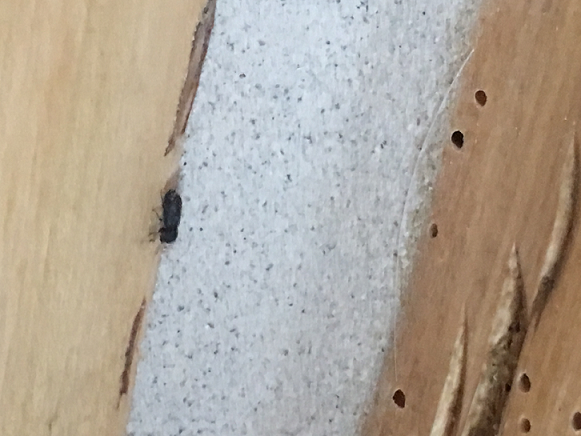 6425. Many tiny holes in log inside cabin – Piles of wood dust near holes. Gordon Drive, Naples, FL. United States