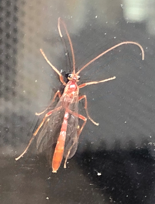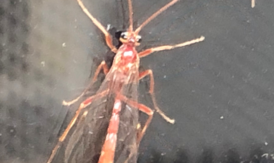 Number 6348 This insect needs no treatment/control as it is an ichneumon wasp (Hymenoptera: Ichneumonidae). These wasps all are parasitic on other arthropods, mainly other insects.