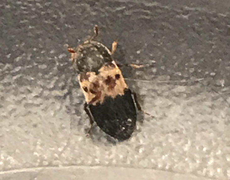 Number 6187 – This is a larder beetle, Dermestes lardarius (Coleoptera: Dermestidae), a cosmopolitan pantry pest. Click here for more detailed information.