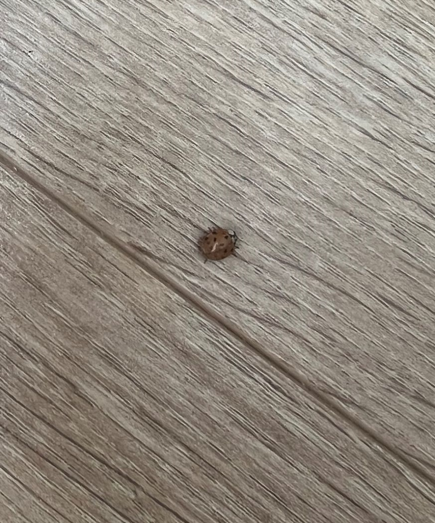 Number 7416. This is a lady beetle (Coleoptera: Coccinellidae); it looks like an Asian multicoloured lady beetle, Harmonia axyridis. These often enter buildings in the autumn, in search of hibernating sites. Although they do no direct harm inside, they can be serious nuisances when they congregate in large numbers. See Lady beetle detailed information .