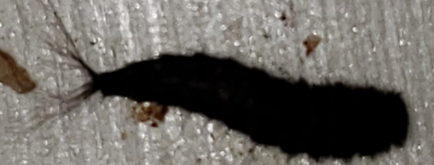 Number 7337. This is a larva of a beetle in the family Dermestidae (hide/skin/larder/carpet beetles and allies). It most likely is in the genus Attagenus (black carpet beetles), but a Dermestes sp. (larder beetles) cannot be ruled out as I cannot see the distinguishing characters clearly enough. See Carpet Beetle Control Recommendation.