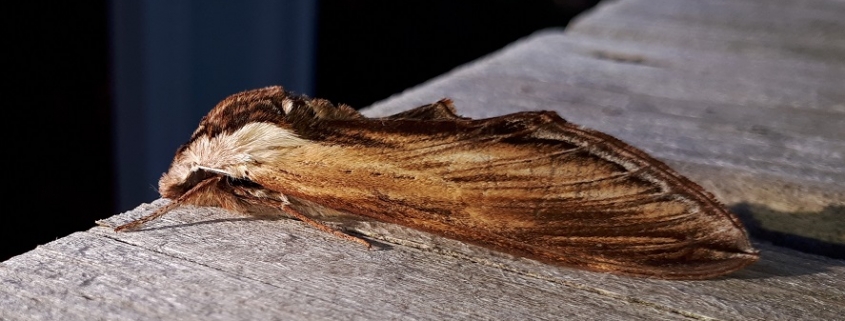 6269 Mid day this was hanging out on the deck, it looks like fur on its face and I think it’s a moth. Was very large and looked like a piece of wood. Took a few pics and left it alone we t back to check and it was gone. From Newfoundland