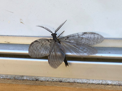 Number 6287 This is a male fishfly (Megaloptera: Corydalidae; subfamily Chauliodinae); it might be a summer fishfly, Chauliodes pectinicornis Click here for an image.