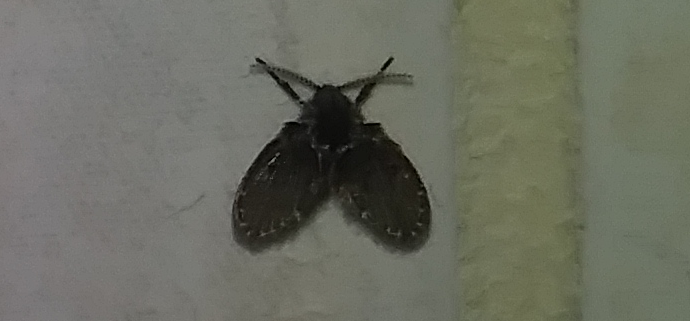 Number 6209 – This is a moth fly (Diptera: Psychodidae), Click here for an example. Also known as drain flies or sewer flies, these are nuisance pests that cause no real harm. Their larvae usually are found in small accumulations of very foul water, such as in seldom used floor drains or drip trays under refrigerators. Click here for more detailed information including control suggestions.