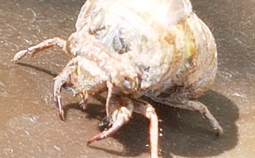 Number 6587. This is a nymph of a dog-day/annual cicada (Hemiptera/Auchenorrhyncha: Cicadidae). The nymphs spend three to five years underground feeding on sap from roots, and when fully grown, they tunnel up to the surface to find a safe place for the adult winged insect to emerge from its nymphal ‘shell.’ They are called annual cicadas because some emerge every year, and dog-day because their peak emergence usually in late summer (the dog-days).