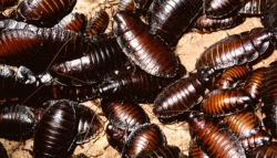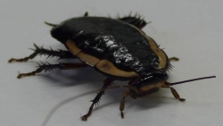 Number 6303 This is a nymph of a German cockroach, Blattella germanica (Blattodea: Blattellidae), a very widespread pest species that can be difficult to bring under complete control. Click here and read on these pages for control recommendations.