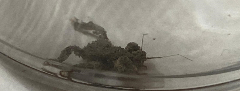 7056. I found this guy walking slowly on the wall at night. Haven’t seen anything like this. From what I can gather online, it resembles a bit like a masked hunter. I’m wondering if his mottled appearance is due to cat litter. The picture is magnified as the bug is trapped under a shotglass and I zoomed in 4x with my phone. His real size is around nearly a cm I found him August 15th, 2020. Cheers. Toronto, Ontario. Canada