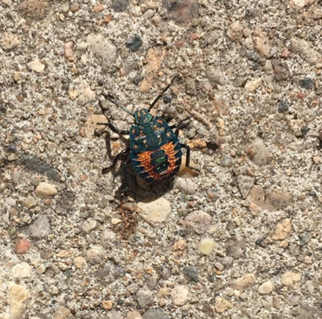 Number 6984. This is a nymph of a stink bug (Hemiptera/Heteroptera: Pentatomidae); it looks like one of the predatory species in the genus Apoecilus. Click here for an image & Click here for more information.