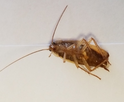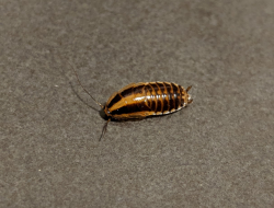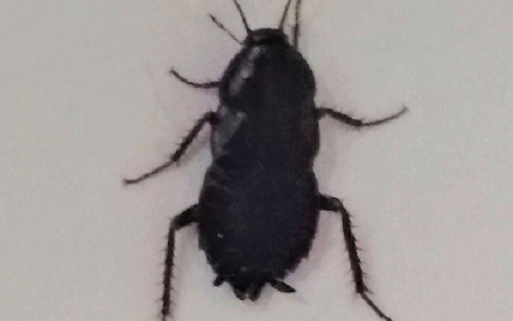 Number 6349 This is an oriental cockroach, Blatta orientalis (Blattodea: Blattidae), a cosmopolitan pest species. Click here for more detailed information and Click here or elsewhere on this site for some control recommendations.