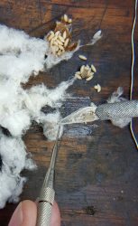 /in Pest Identification /by Pest Control Canada5775 These larval sacks were protected in some fine insulating substance just like wool. Found them in a junction box on a wall outside. (It even smelled like lambs wool.) There were about ten of these brown, slightly crispy-shelled sacks. Only one sack contained a set of 30 or so active larvae, the rest were nearly all milky, yellowish/white liquid. We’re in the Portland, Oregon, U.S. area. Really curious and unusual. Can anyone help? Barrett and Susan.