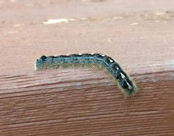 This is a tent caterpillar (Lepidoptera: Lasiocampidae; Malacosoma sp.); likely a forest tent caterpillar, M. disstria, see http://tinyurl.com/hensdpb for images and more detailed information. Ed Saugstad, retired entomologist; Sinks Grove, WV.