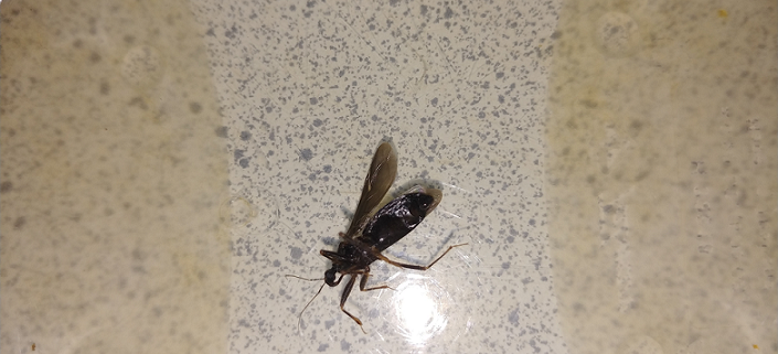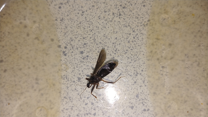 Number 6406. This is an assassin bug (Hemiptera/Heteroptera: Reduviidae) called the masked hunter (Reduvius personatus), an introduced species with a cosmopolitan distribution. These are general predators on other small arthropods, and are reputed to have a very painful (but not dangerous) bite.