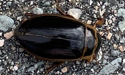 Number 6566. This is a predaceous diving beetle (Coleoptera: Dytiscidae), and judging from the foreleg I can see, it’s a male. These are general predators on other small aquatic life forms, and being very strong fliers, they often are found at quite some distance from water.
