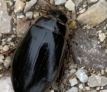 7014.    This big black shiny beetle is approximately an inch long. This pic was taken July /20 in the port au port area of NL. It was outside. I have look at so many black beetles and cannot identity this one … my brother in law have lived in NL for 60 years and have never seen any beetle like this one . I hope to find out what kind of beetle this is. Thank you. Black Duck Brook, Newfoundland. Canada
