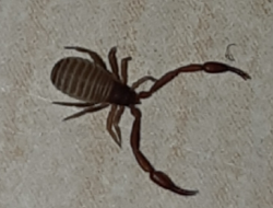 Number 6350 This is a pseudoscorpion, a non-venomous arachnid related to scorpions and spiders. These are general predators on other small arthropods, Click here for more detailed information.