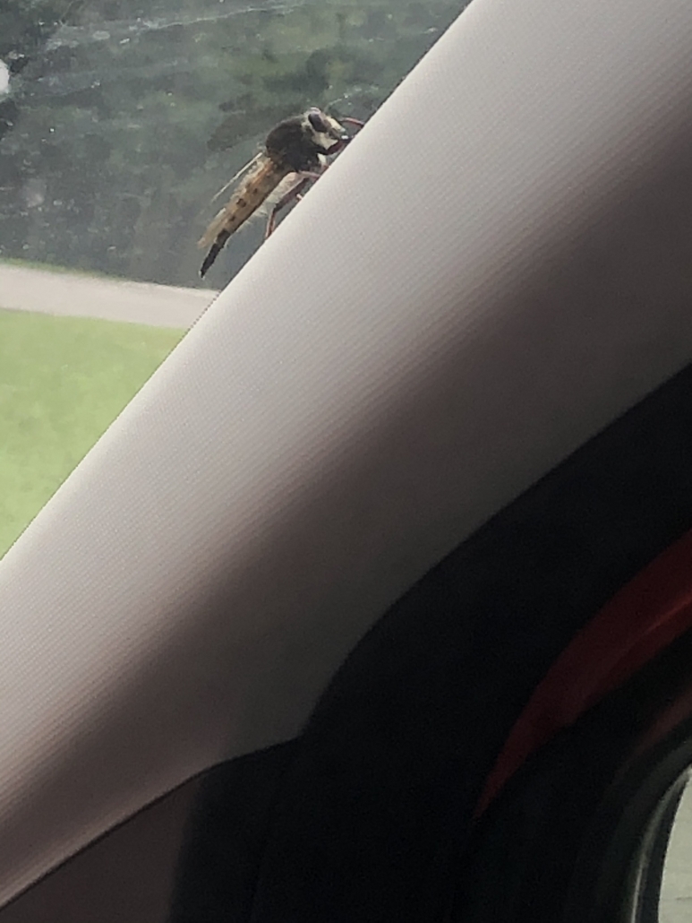 Number 7057. This is a robber fly (Diptera: Asilidae); Click here for an example. These are ambush predators on other small arthropods, mainly other insects..